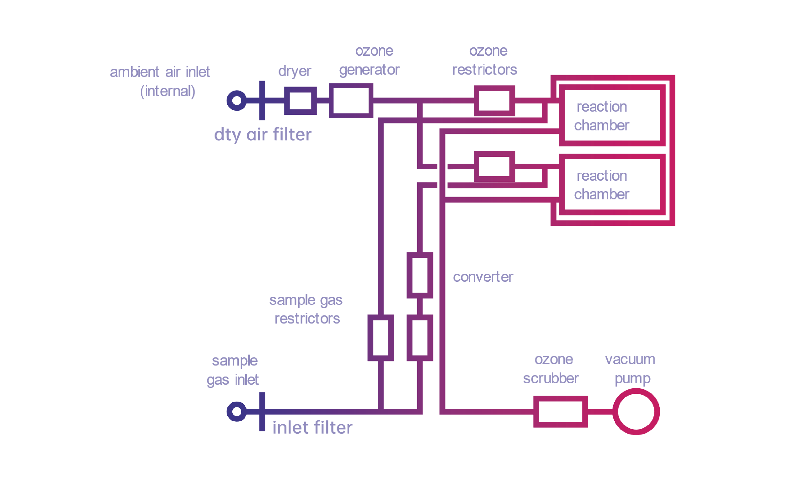 · 結(jié)合高效制氮技術(shù),生成的NO以氮?dú)鉃檩d氣,可最大限度避免用戶暴露于NO2等有害副產(chǎn)物的可能